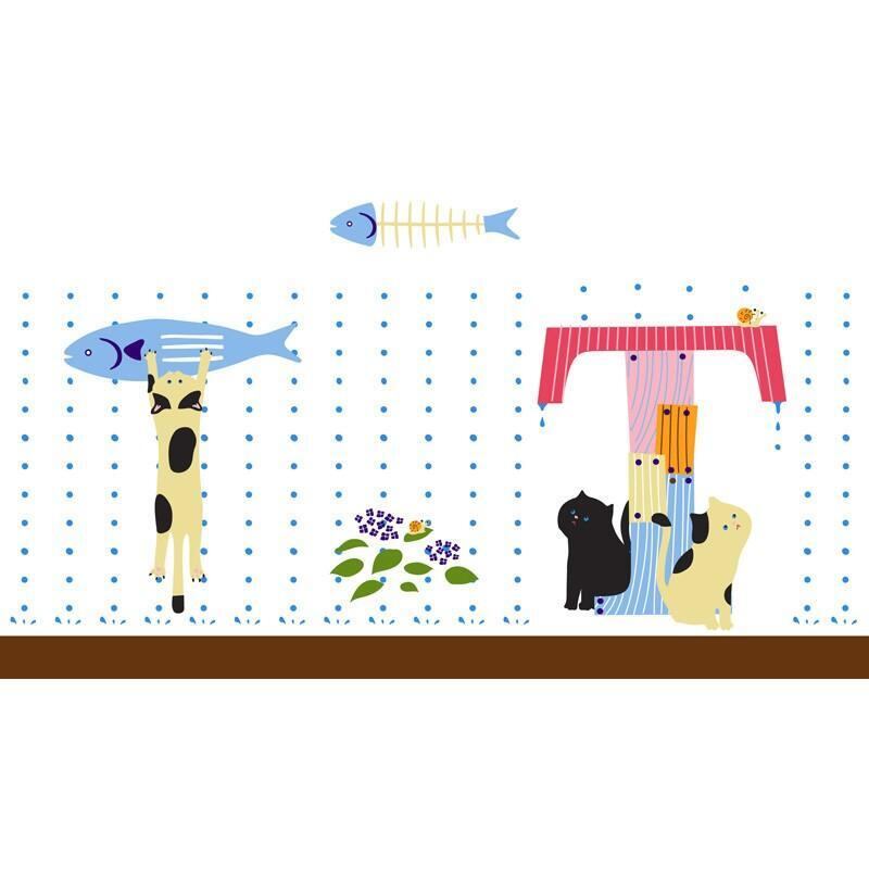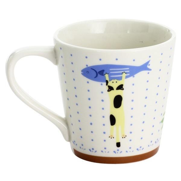 アルファベットの「文字」と猫のじゃれ合いを描いた可愛いマグカップです。