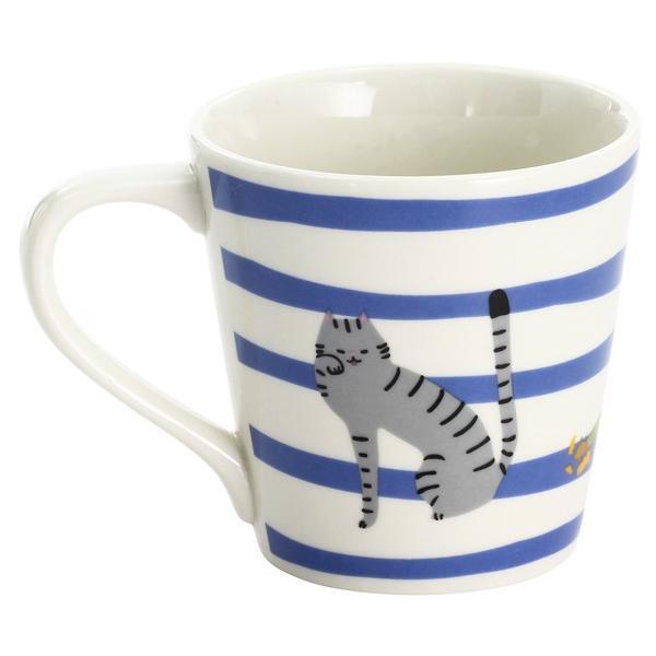 アルファベットの「文字」と猫のじゃれ合いを描いた可愛いマグカップです。
