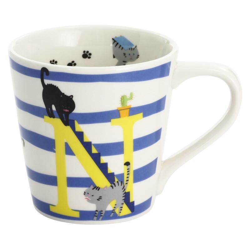 猫アルファベットマグカップ「N」 ギフト プレゼント イニシャルマグ