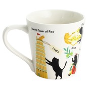 国旗と、その国に、ちなんだ衣装に扮した猫・行動を楽しむ猫を描いた可愛いマグカップです。